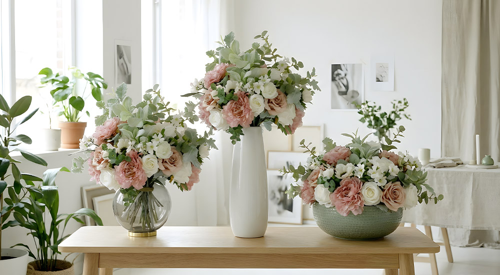 Hem / Konstblommor tips / Arrangemang & teknik / Hur väljer du rätt vas till dina blommor?