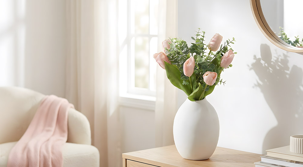 Färska vårblommor är vackra, men ofta kortlivade. Här blir konstgjorda blommor ett praktiskt och hållbart alternativ. Med konstgjorda tulpaner, ranunkler eller körsbärsblom kan du behålla samma uttryck hela säsongen – utan att behöva tänka på vatten, temperatur eller vissna blad.