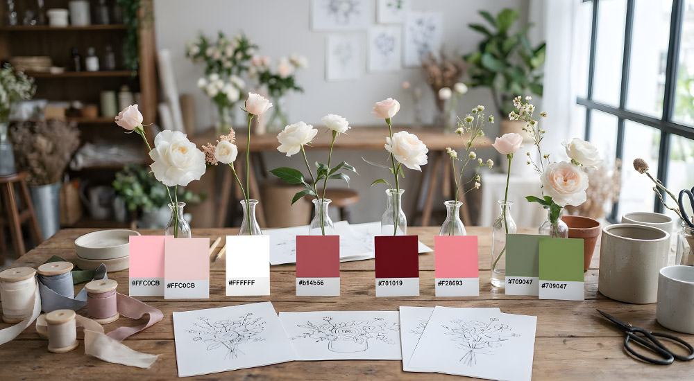 Innan du väljer färger är det viktigt att se till sammanhanget. Vilka färger finns redan i rummet? Väggar, möbler och textilier påverkar hur blomfärger upplevs. En bukett ska komplettera sin omgivning, inte konkurrera med den.